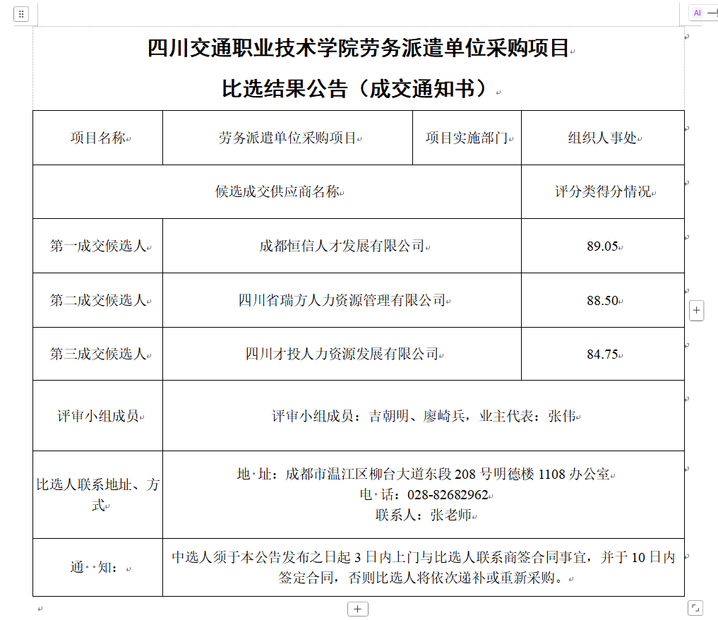 下一条:四川交通职业技术学院纪委谈话室改造项目(第二次)比选结果公告(成交通知书)